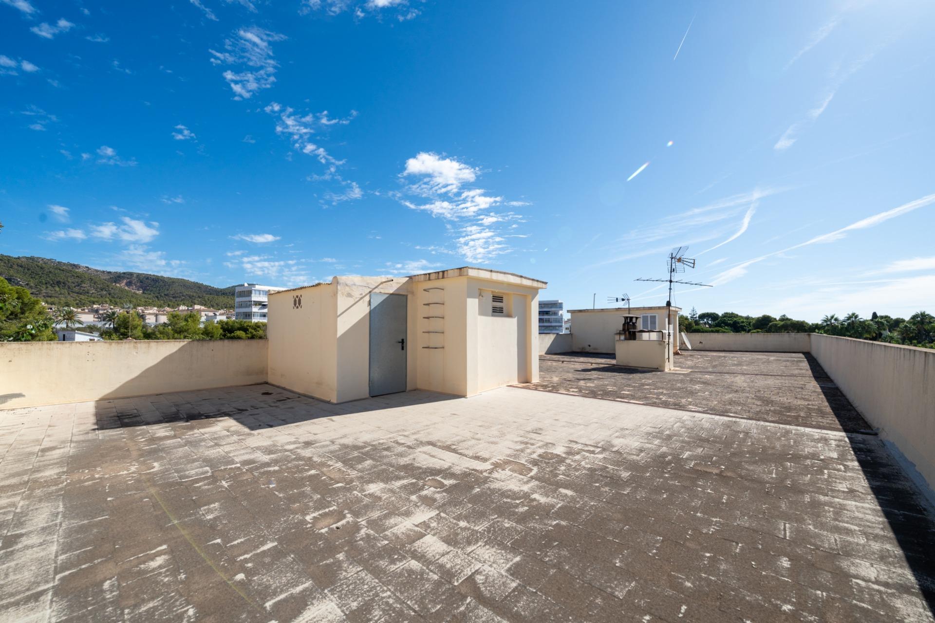 Además, dispone de la oportunidad de adquirir el 50 % de la terraza solárium del edificio con trastero y vistas al mar por 60.000 € adicionales. Dispone de un permiso de construcción futura si la normativa urbanística de la zona cambia, ya que la actual no permite construcción adicional.