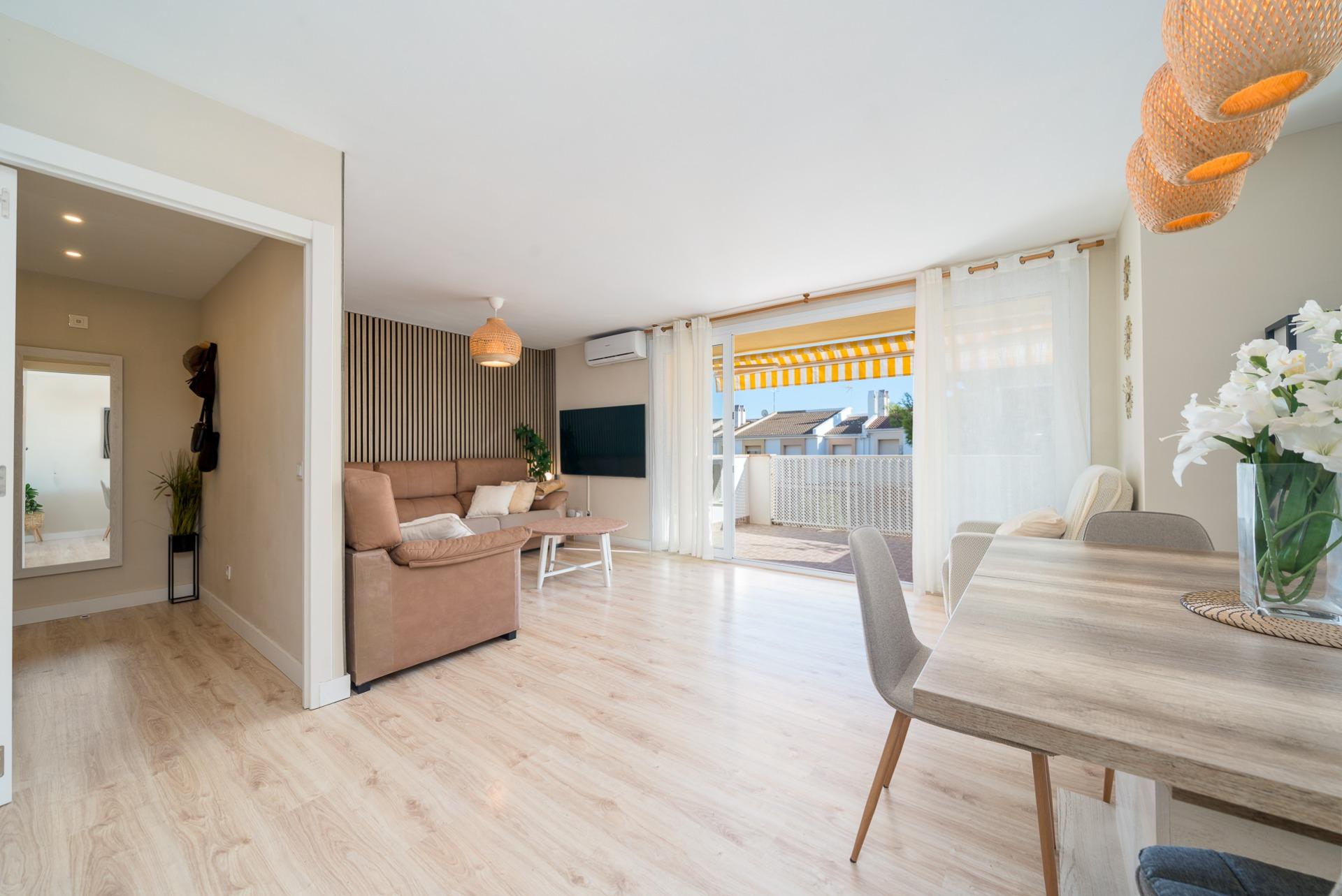 En el interior, destaca el salón-comedor, una estancia amplia, muy luminosa y de líneas modernas que aporta una sensación de espacio y confort y se conecta directamente con la terraza, perfecta para disfrutar del clima mediterráneo de Mallorca, relajarse al aire libre o compartir momentos con familia y amigos. El dormitorio principal ofrece un espacio cómodo y bien aprovechado, mientras que las habitaciones adicionales resultan ideales para familias, teletrabajo o invitados. La propiedad se presenta recientemente reformada y lista para entrar a vivir, permitiendo al futuro propietario disfrutarla desde el primer día, con la comodidad añadida de venderse amueblada y con unos gastos de comunidad muy contenidos, de tan solo 40 € al mes.