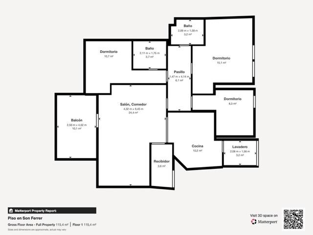 La vivienda cuenta con una superficie aproximada de 100 m² construidos (88 m² útiles), distribuidos en tres dormitorios y dos baños completos, además de un salón-comedor amplio y luminoso conectado con una acogedora terraza orientada al sur, perfecta para disfrutar del sol durante todo el día. El inmueble forma parte de un edificio residencial en primera planta sin ascensor y ha sido diseñado para ofrecer comodidad y funcionalidad durante todo el año. Entre sus elementos más destacados encontramos una cocina moderna totalmente equipada, suelos de parquet, carpintería exterior de PVC, calefacción eléctrica, aire acondicionado con bomba de calor, plaza de aparcamiento y trastero, lo que la convierte en una opción ideal tanto como residencia habitual como segunda residencia en Mallorca.