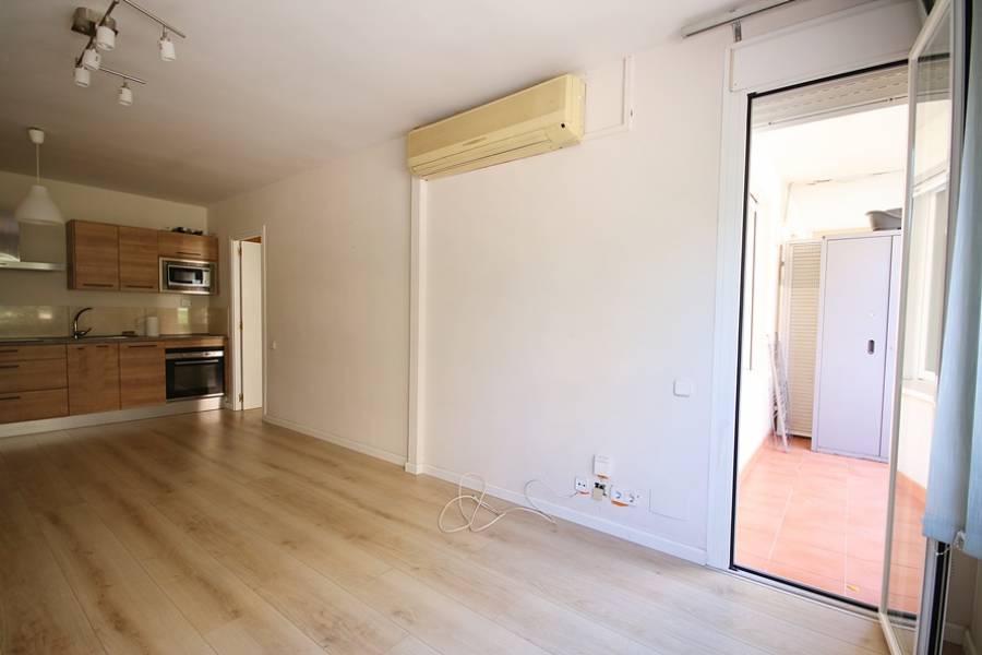 Apartamento en alquiler situado en la zona de Parc de ses Fonts. Dispone de 1 habitación doble, 1 baño completo con bañera, cocina americana amueblada y equipada con electrodomésticos, y salón-comedor con acceso a balcón.