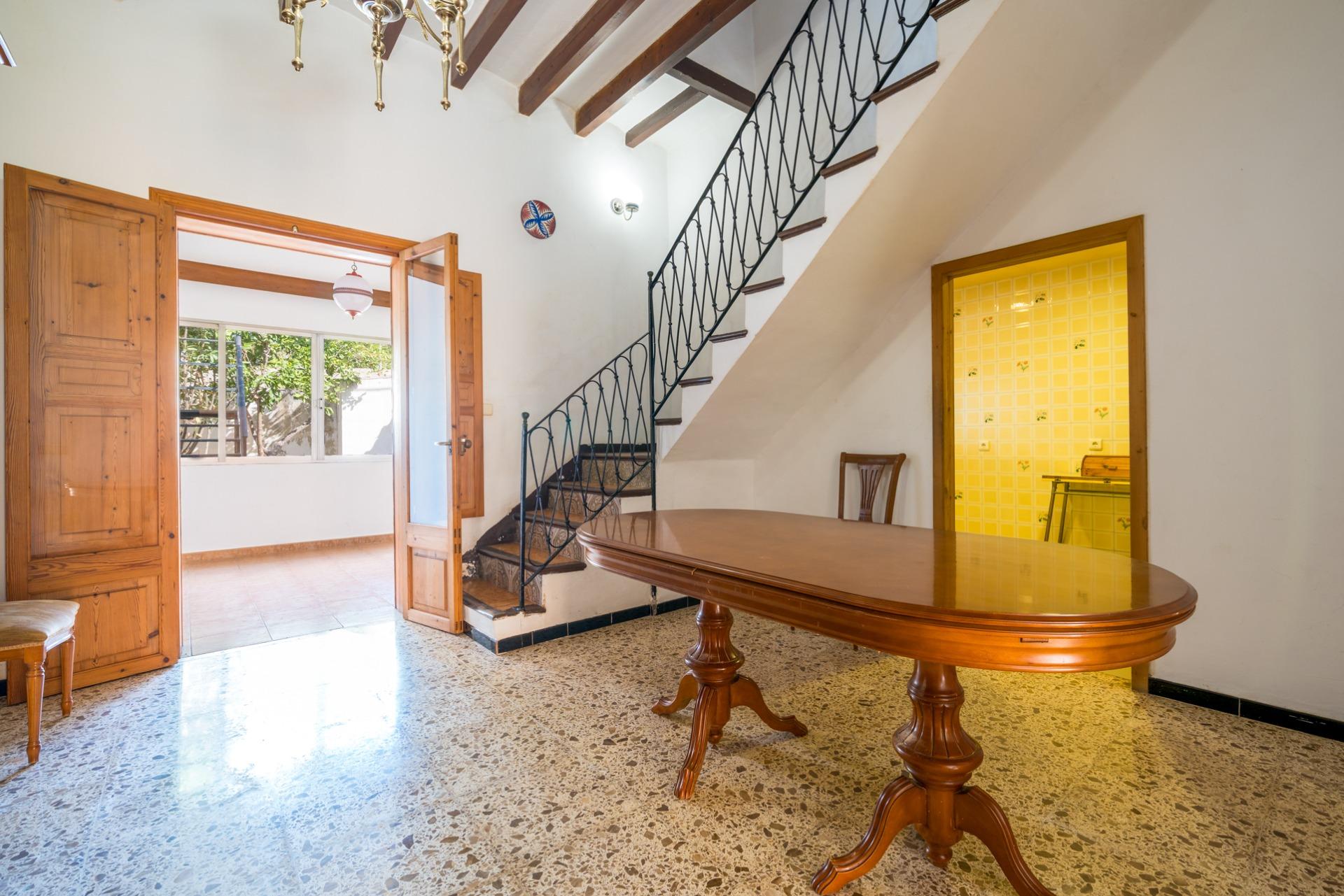 Descubre esta auténtica casa adosada en Santa Maria del Camí, uno de los pueblos más apreciados de Mallorca por su encanto tradicional, servicios cercanos y excelente conexión con Palma. La propiedad cuenta con 162 m² construidos en dos plantas, con elementos originales como techos altos y vigas de madera vistas que aportan carácter y amplitud. En la planta baja encontrarás un amplio recibidor, una habitación doble (ideal como despacho o dormitorio), comedor, cocina con chimenea, sala de estar luminosa, baño completo, zona de lavandería y un patio privado con una estancia adicional. En la primera planta hay tres dormitorios dobles (uno con acceso directo a la terraza), una habitación adicional y una terraza con bajada directa al patio. La azotea cuenta con una amplia terraza solárium reformada tras la rehabilitación del tejado, perfecta para crear un espacio chill-out o disfrutar de las vistas. Características destacadas: - Tejado reformado con nueva terraza solárium - Vivienda de origen, en buen estado general - Patio, terraza en planta y solárium - Grandes posibilidades de reforma y personalización Una excelente oportunidad para quienes buscan una casa de pueblo con espacio exterior y mucho potencial en uno de los pueblos más demandados de la isla. Contáctanos para más información o concertar una visita. ¡No dejes pasar esta oportunidad!