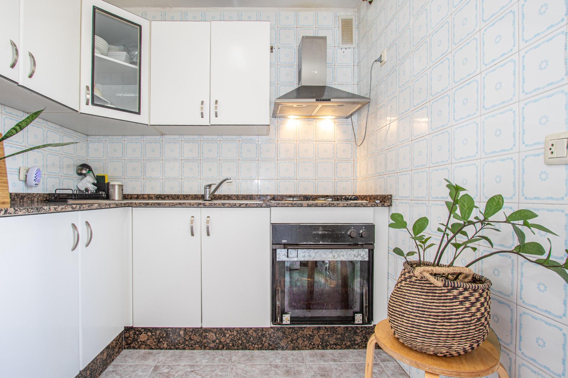 Corazón del hogar: Un salón acogedor y una cocina equipada que cuenta con una práctica coladuría, ideal para organizar la colada y el almacenaje extra que toda familia necesita.
