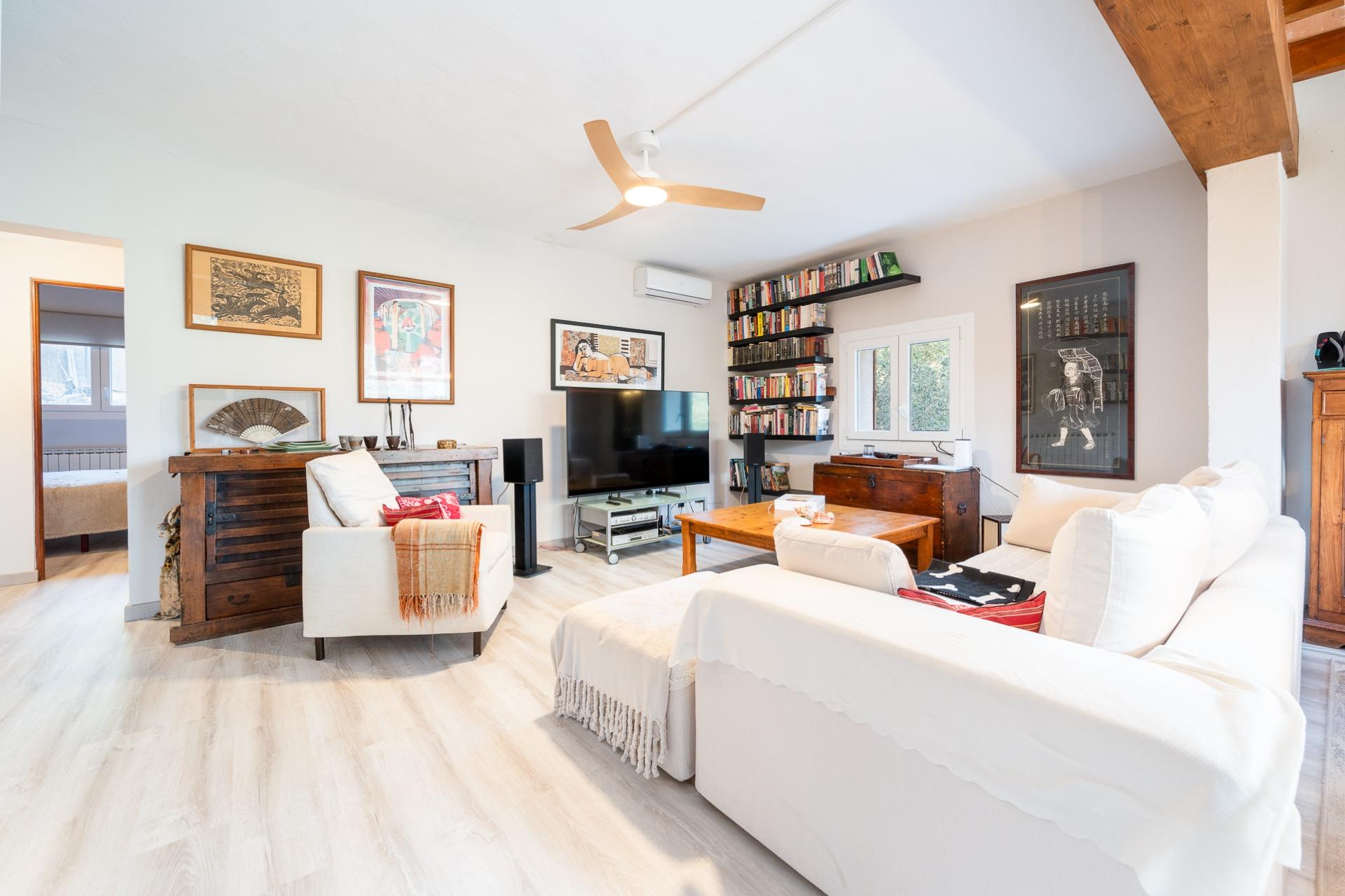 La vivienda cuenta con una superficie aproximada de 120 m² construidos (89 m² según el Registro), distribuidos en tres dormitorios dobles y dos baños, además de un salón-comedor acogedor, ideal para disfrutar de la casa en cualquier estación. La zona de día se complementa con una cocina abierta de estilo moderno, totalmente equipada, que aporta funcionalidad y un ambiente contemporáneo.