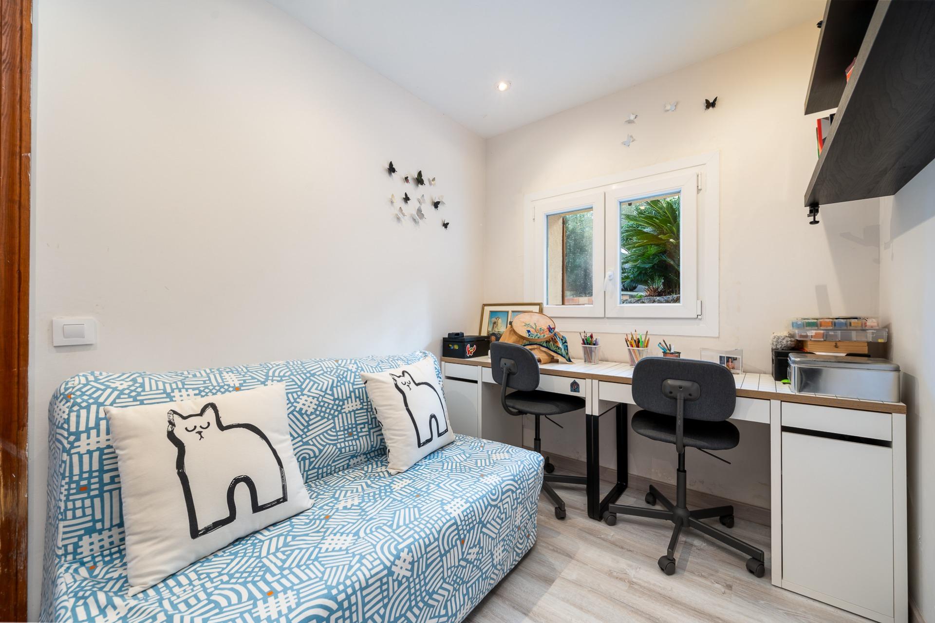 Un valor diferencial de la propiedad es que, en la planta inferior, se encuentra una habitación doble de aproximadamente 20 m² con baño en suite y entrada independiente, con gran potencial para convertirse en un apartamento de invitados o un espacio privado para teletrabajo, visitas o familiares, aportando independencia y flexibilidad de uso.